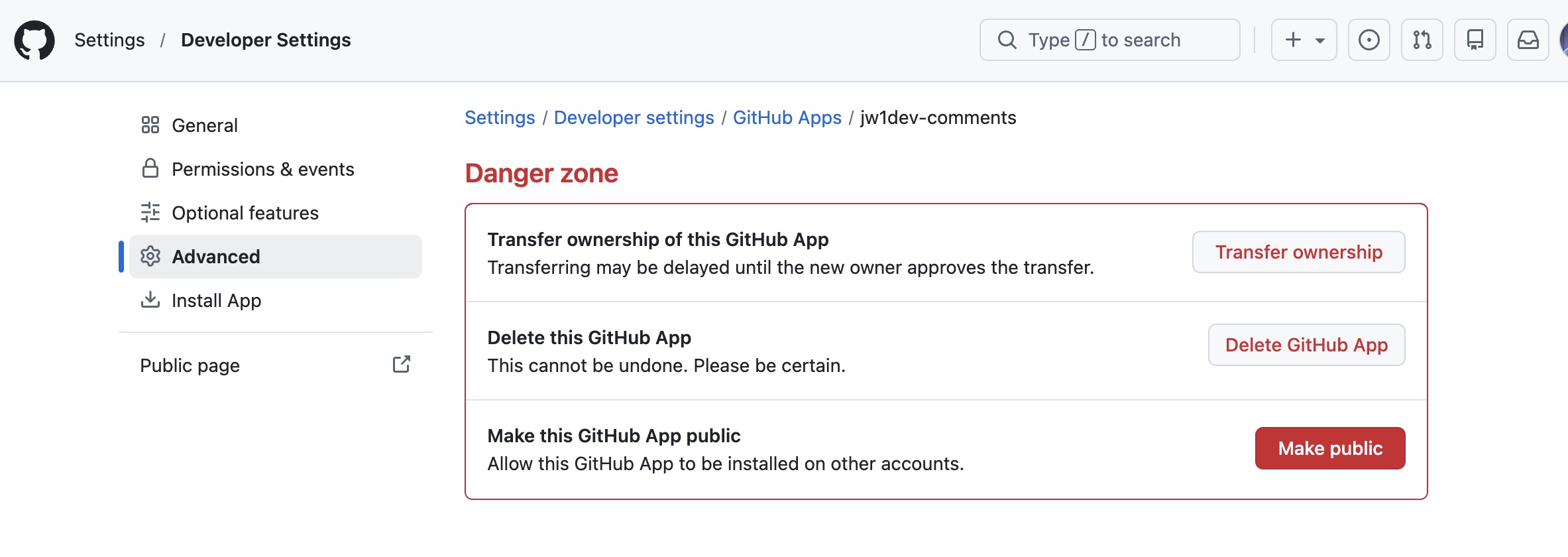 Okay, now click Create GitHub App, a new GitHub App should be created in your account now.